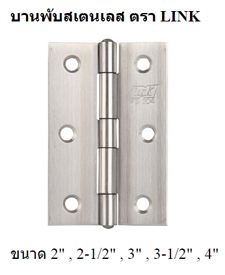 Name : บานพับ STL ตรา LINK ไม่มีแหวน 3.5 นิ้ว [W0052]Details : บานพับ STL ตรา LINK ไม่มีแหวน 3.5 นิ้ว ขายยกกล่อง (1 กล่อง มี 10 ตัว) Normal price : 0.00Special price : 324.00